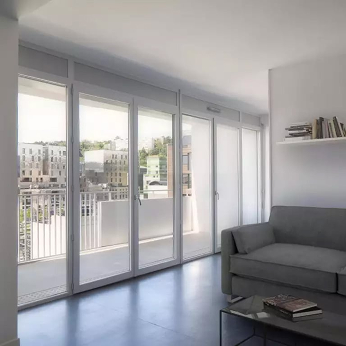 Esta ventana panorámica, de aluminio, madera o PVC, está equipada con hojas que se deslizan por los rieles y pueden desaparecer en la pared, ofreciendo una apertura total. La ventana corredera ofrece un aislamiento térmico óptimo. Personalizable en altura y color, se adapta a todos sus deseos. Cumple con las normas NF, Uw, Aev y Rts, y está fabricada en Francia.